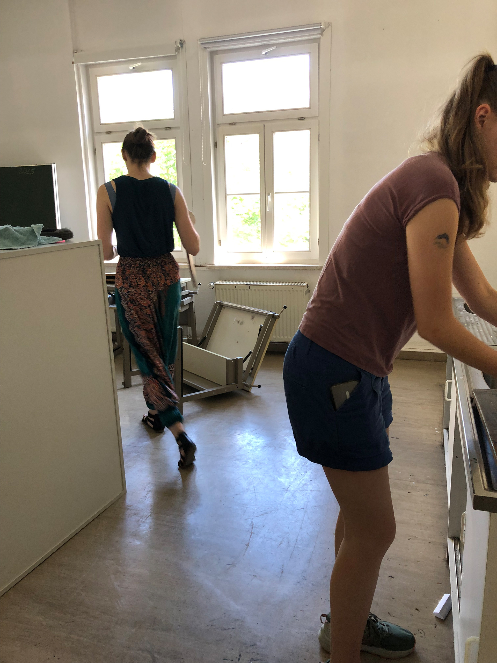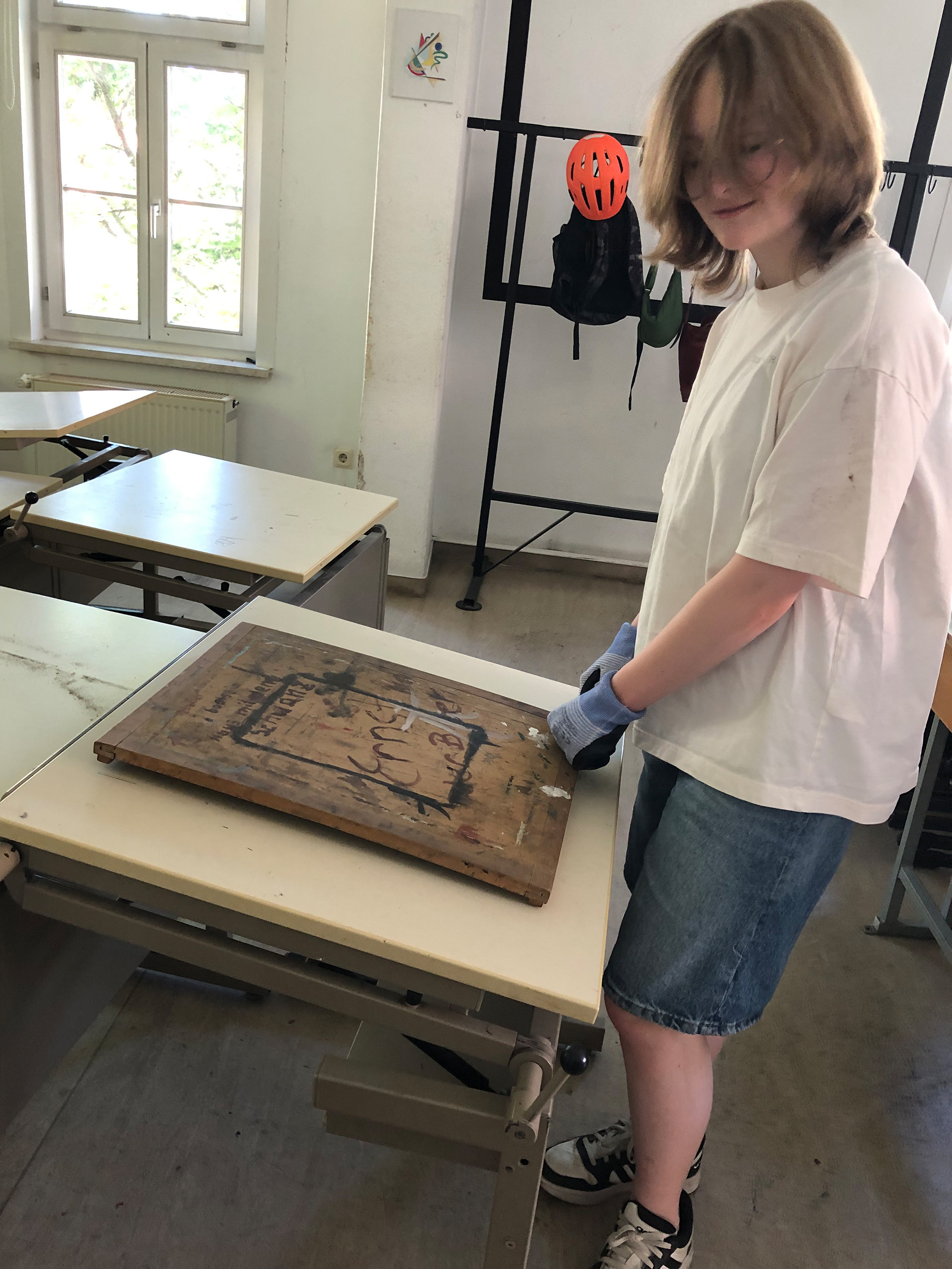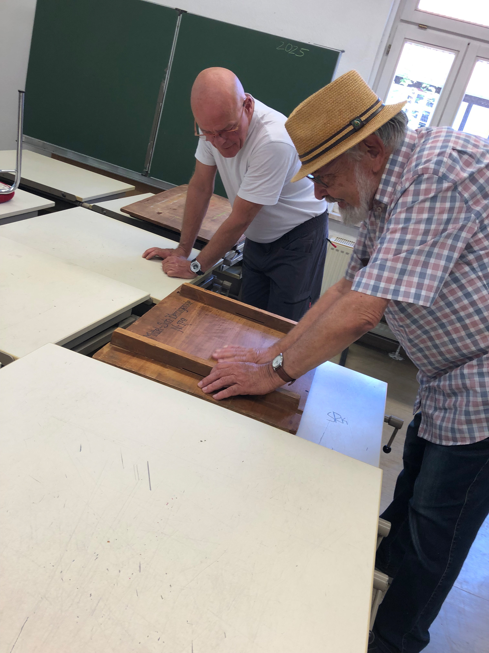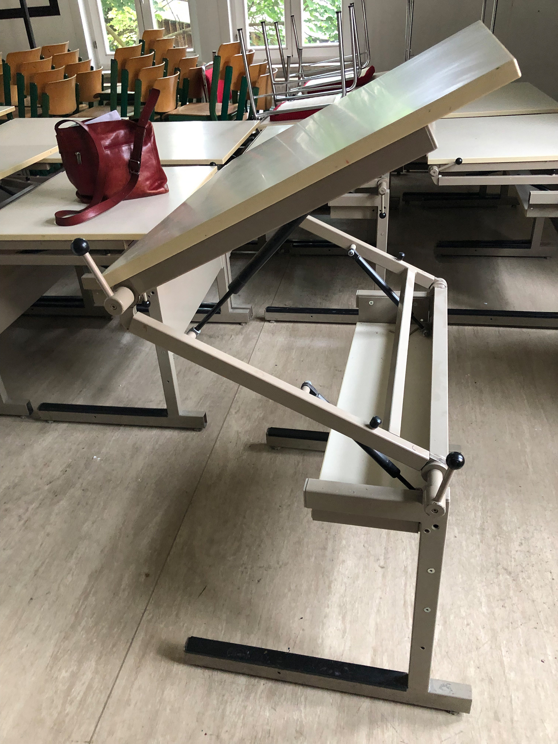 Die Gelegenheit war wie vom Himmel bestellt: Das Oberhaus des HGerhard-Hauptmann-Gymnasiums schließt seine Türen für immer und es waren Zeichentische und anderes Mobiliar aus der Zeit Martin Bobers abzugeben, die wir nun gerne weiternutzen.