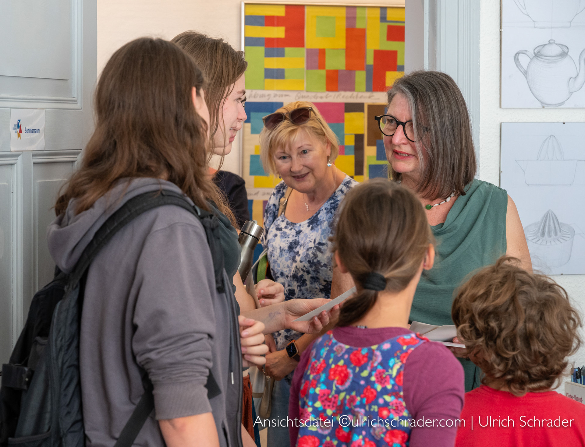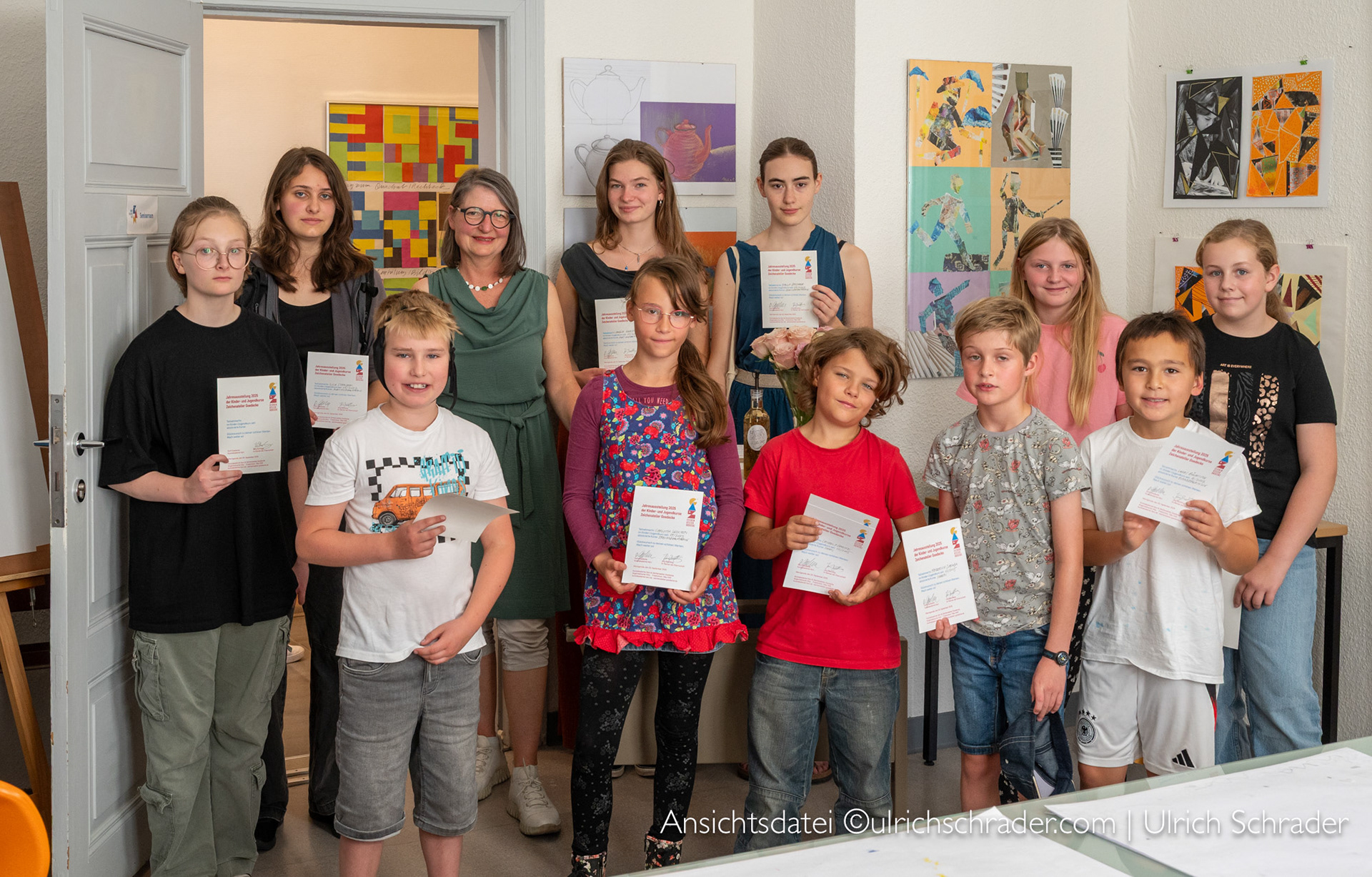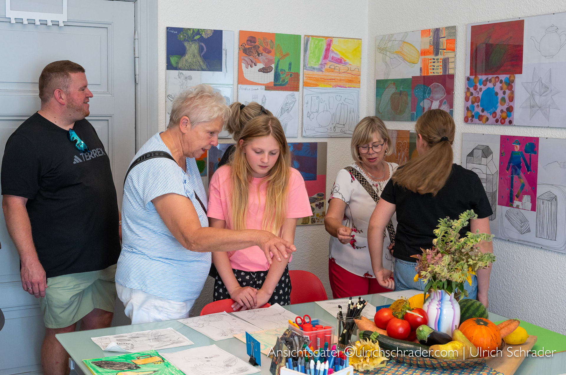 SO RICHTIG STOLZ waren die Schüler über ihre Teilnahmeurkunden und auch über das große Interesse ihrer Eltern, Großeltern und Geschwister. 11 von momentan 20 Schülern aus dem Harzkreis konnten bei der Vernissage anwesend sein. Einige Zeichenschüler sind seit dem ersten Kurs im Januar 2023 dabei – echtes Durchhaltevermögen.