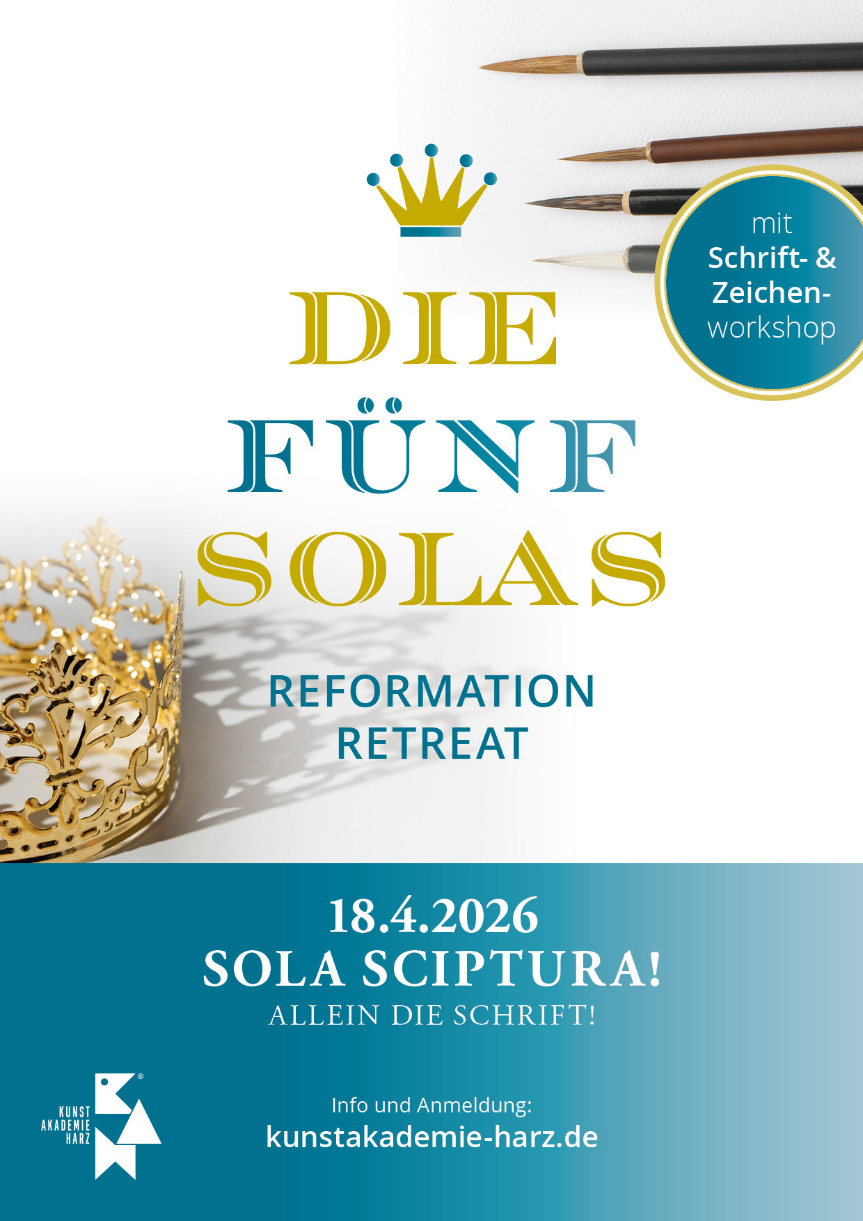 In jedem Reformation Retreat der Kunstakademie Harz kann man auch seine eigene Kreativität entfalten oder neu entdecken. Zur Vertiefung des Themas können verschiedene Zeichen- und Schreibwerkzeuge unter professioneller Anleitung ausprobiert werden. So entstehen eigene, kleine Kunstwerke zum Mitnehmen.
