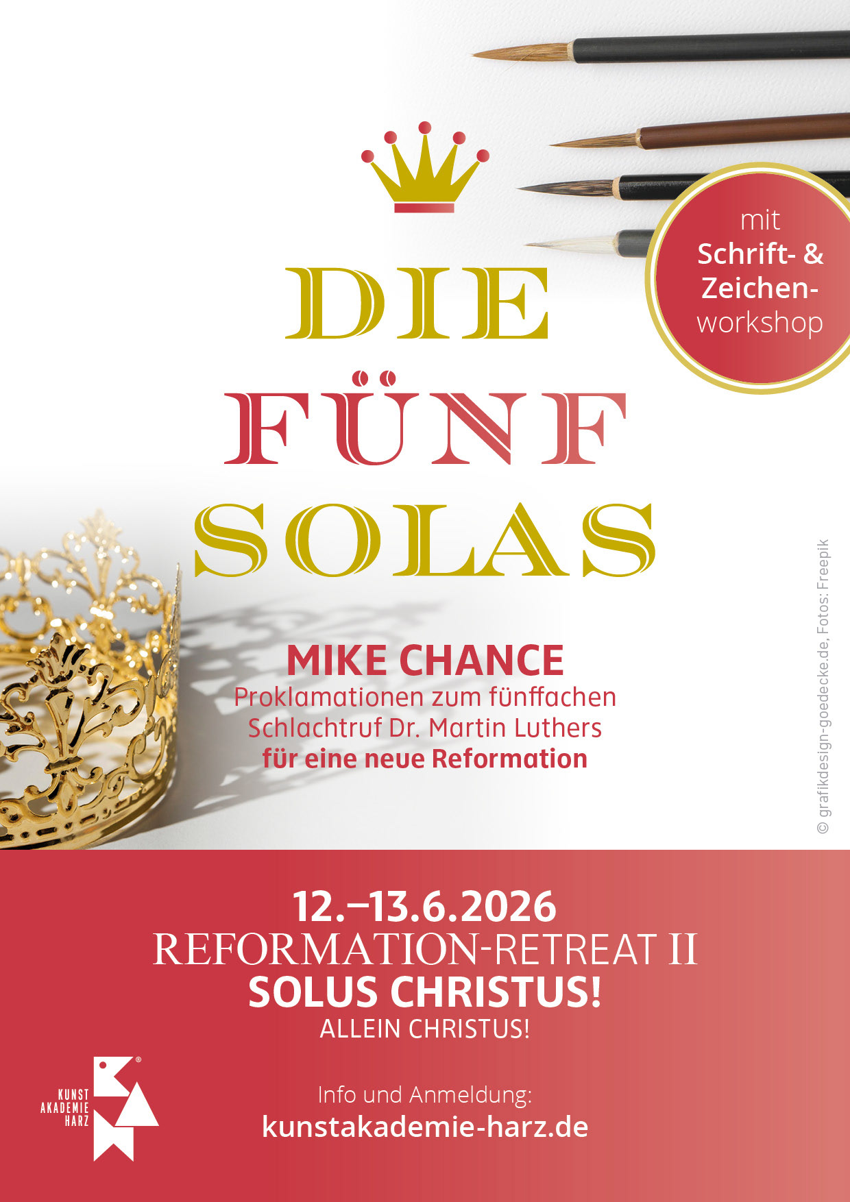 Die Inspiration für die Reformation-Retreats 2026 der Kunstakademie Harz sind der Initiative von Mike & Kay Chance zu verdanken, die in einem ihrer Trainingscamps diesen Funken in mir und anderen Teilnehmern entzündet haben.