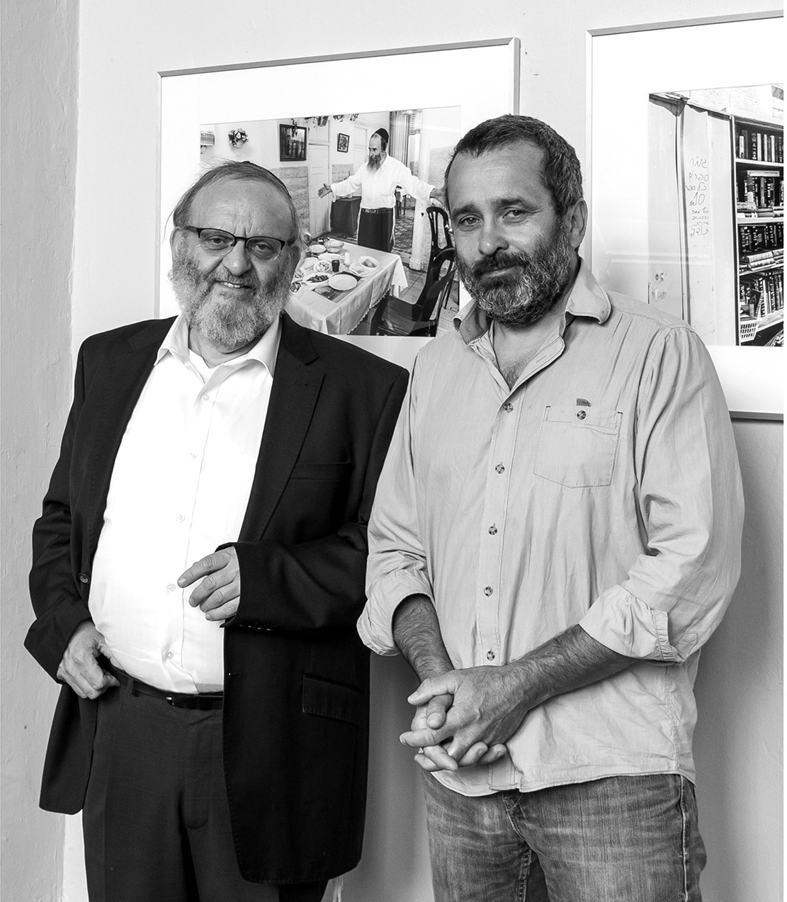 Ulrich Schrader mit Benjamin Pappenheim in der Ausstellung "Reise in eine ungekannte Welt"